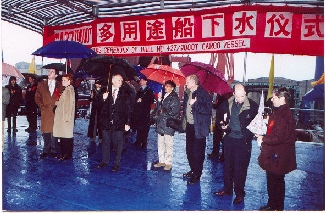 | M/v �CEC Castle� Launching, Zhonghua Shipyard, Shanghai, PRC. 20 December 2000, Mrs Kate Williams, wife of Mr Chris Williams, Director of Graig Shipping plc launched this vessel for its owners Graig Shipping plc. The delivery of this vessel marks the return to shipowning for Graig and the vessel will be registered under the Isle of Man flag. Graig will carry out all strategic management functions of the vessel in house, but will subcontract the day to day commercial management to Clipper Elite Carriers. |